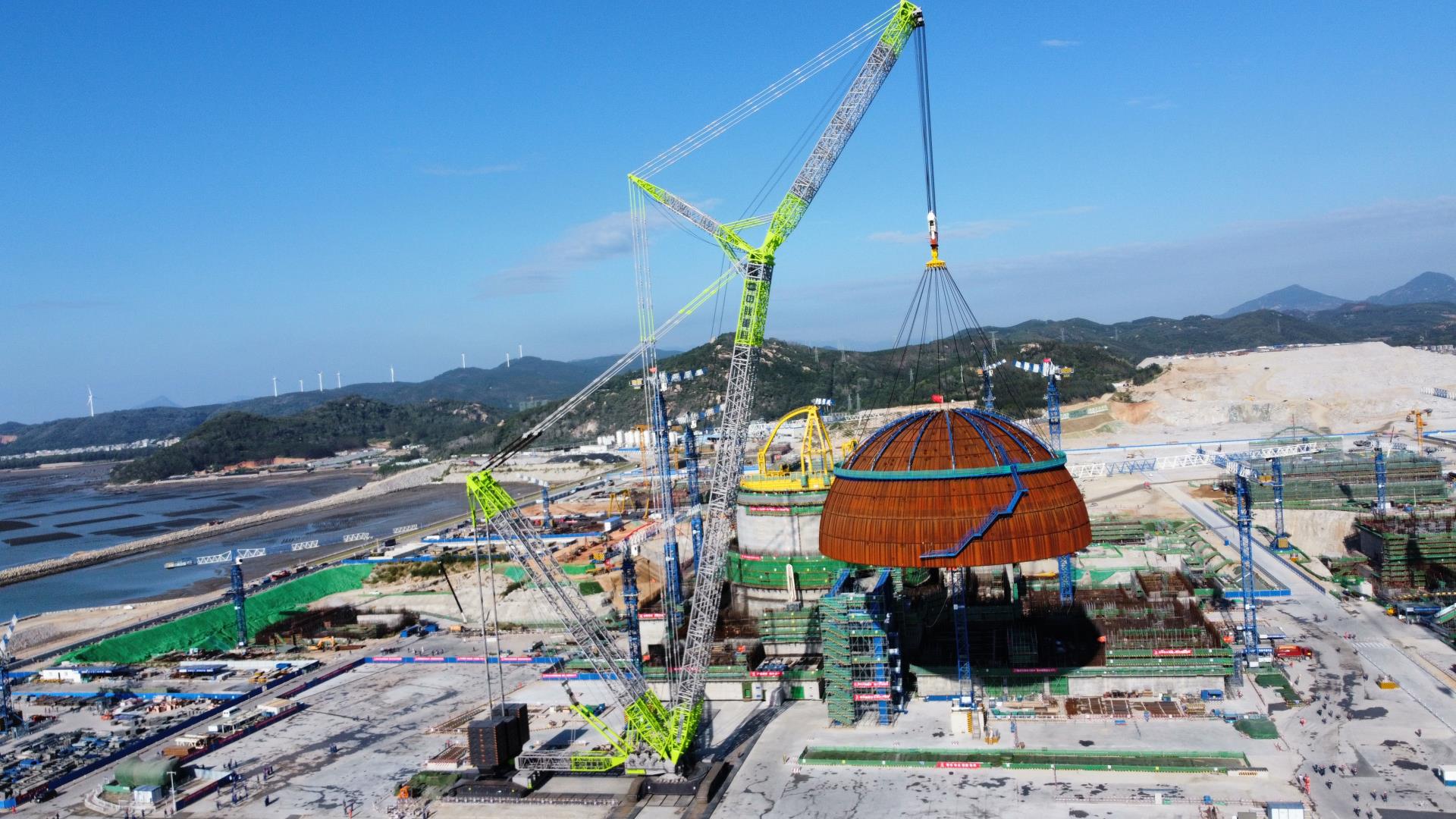 △中联重科ZCC3200NP履带式起重机进行漳州核电穹顶吊装