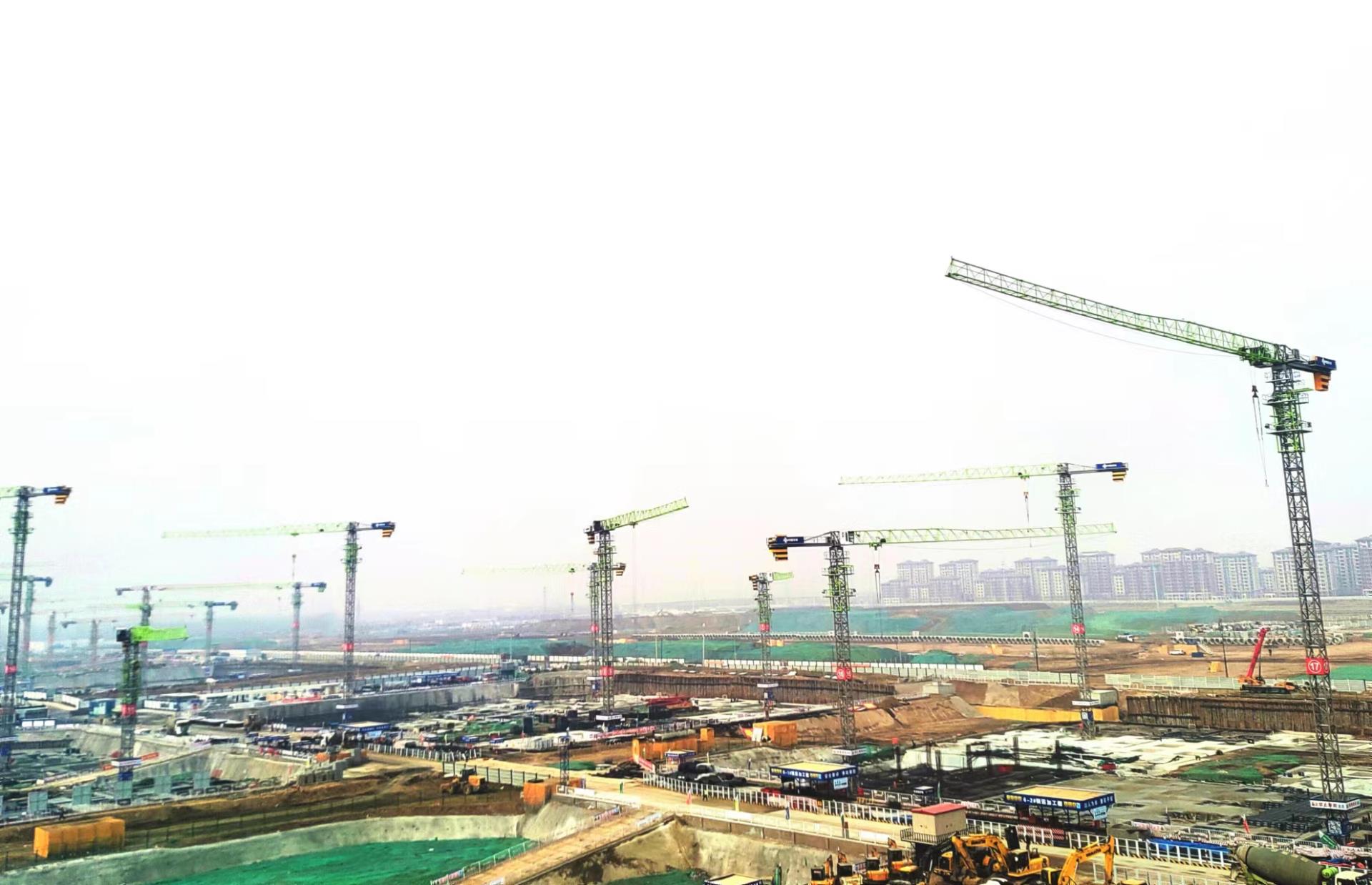 ▲中联重科全新R代塔机挺立“未来之城”雄安