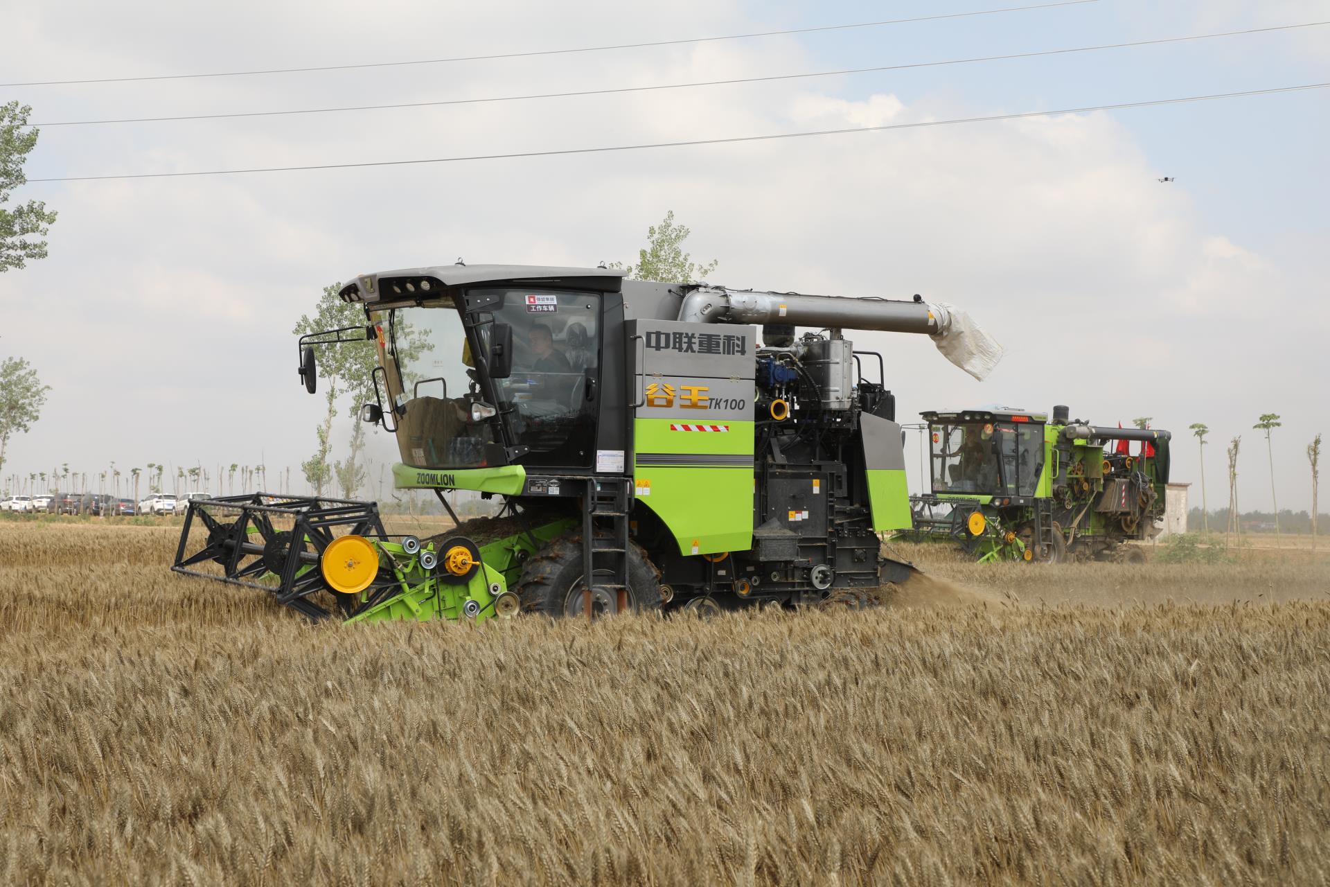 ▲中联重科TK100纵轴流谷物联合收获机正在抢收小麦