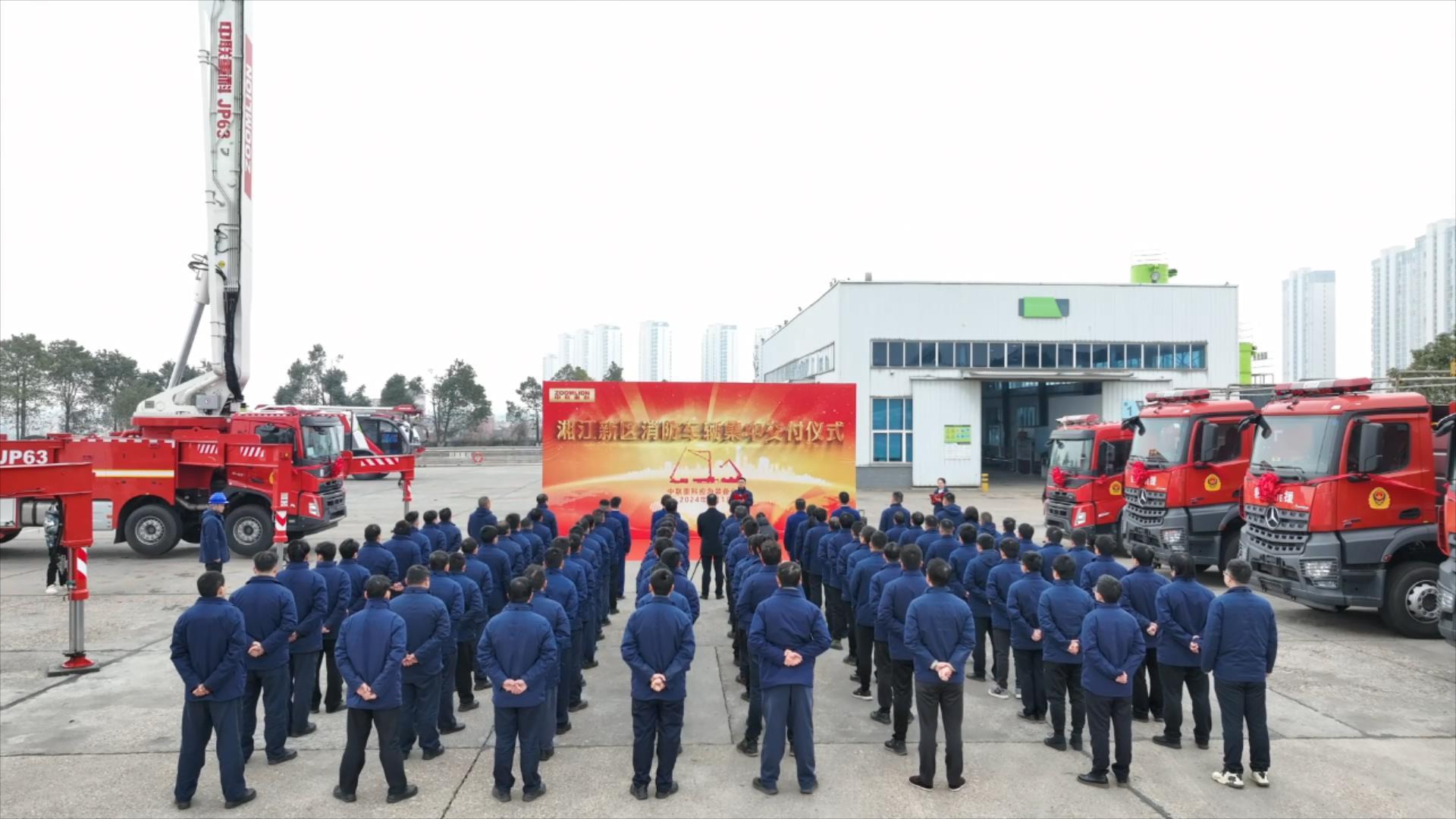 △中联重科消防车集中交付湖南湘江新区